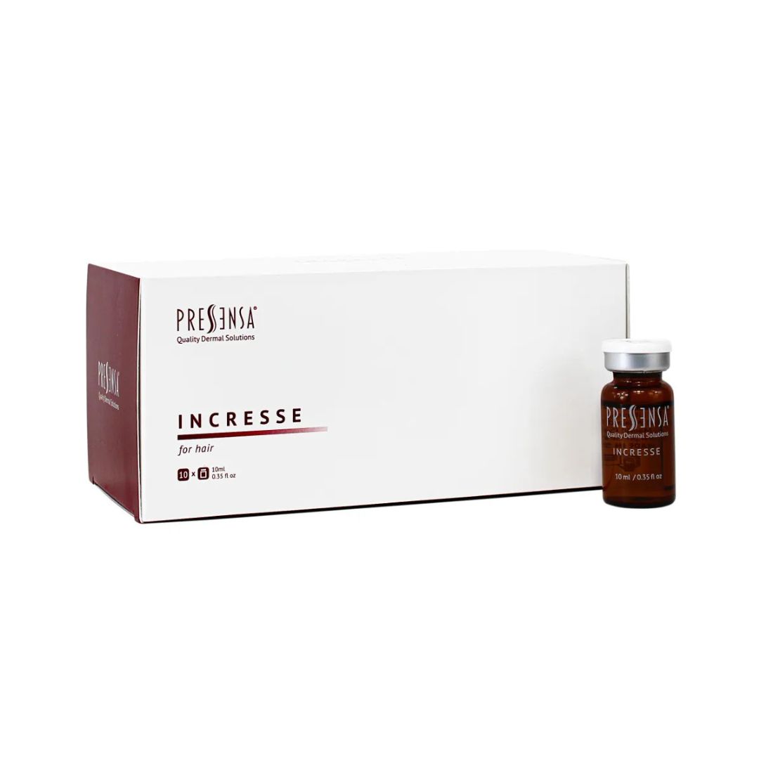 Incresse es una solución estéril para mesoterapia capilar, diseñada para revitalizar el cuero cabelludo y estimular el crecimiento del cabello. Su fórmula rica en metabolitos y activos regeneradores mejora la calidad del folículo piloso, repara los poros y fortalece la raíz capilar.